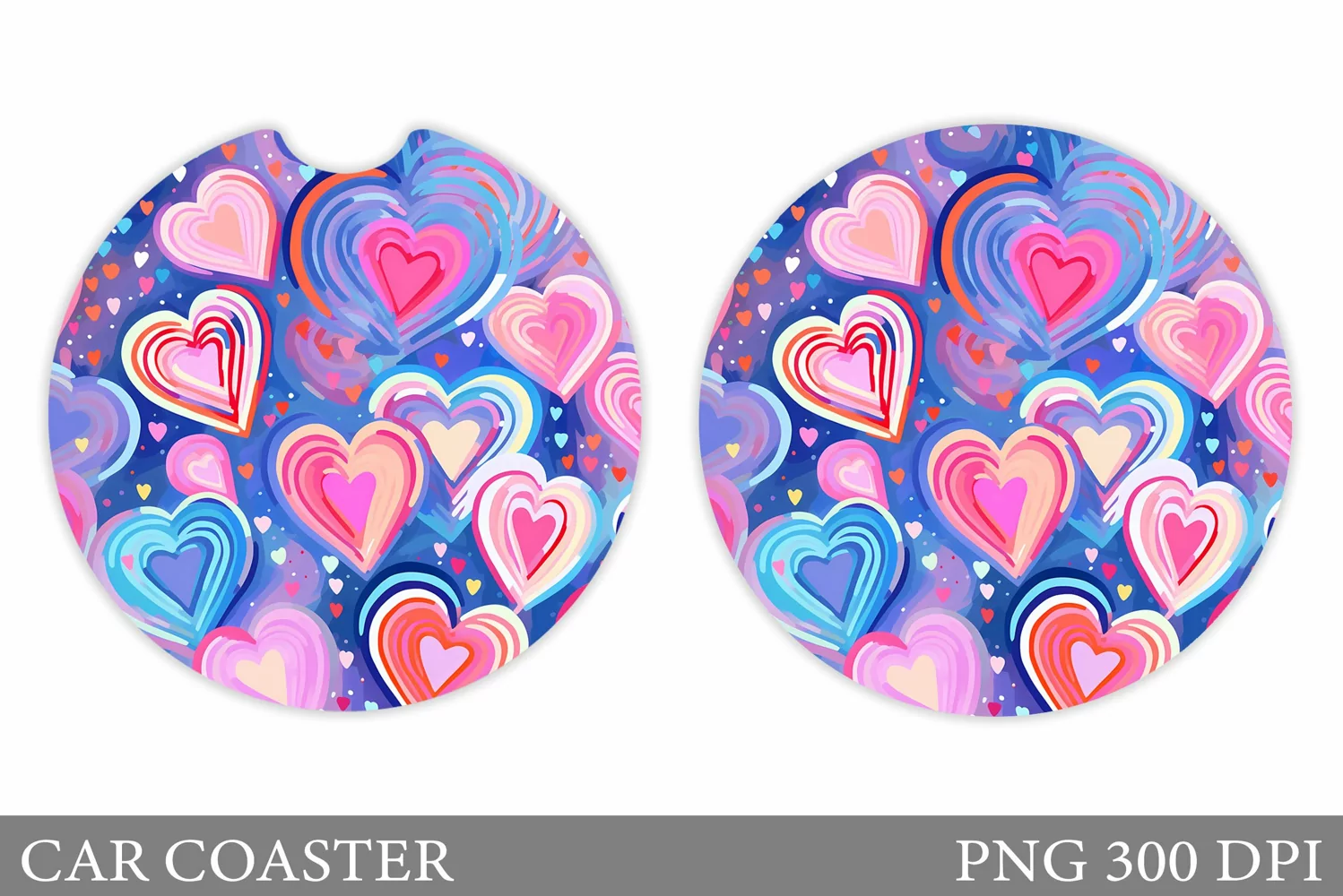 Colorful Hearts Car Coaster. Valentines Car Coaster Design