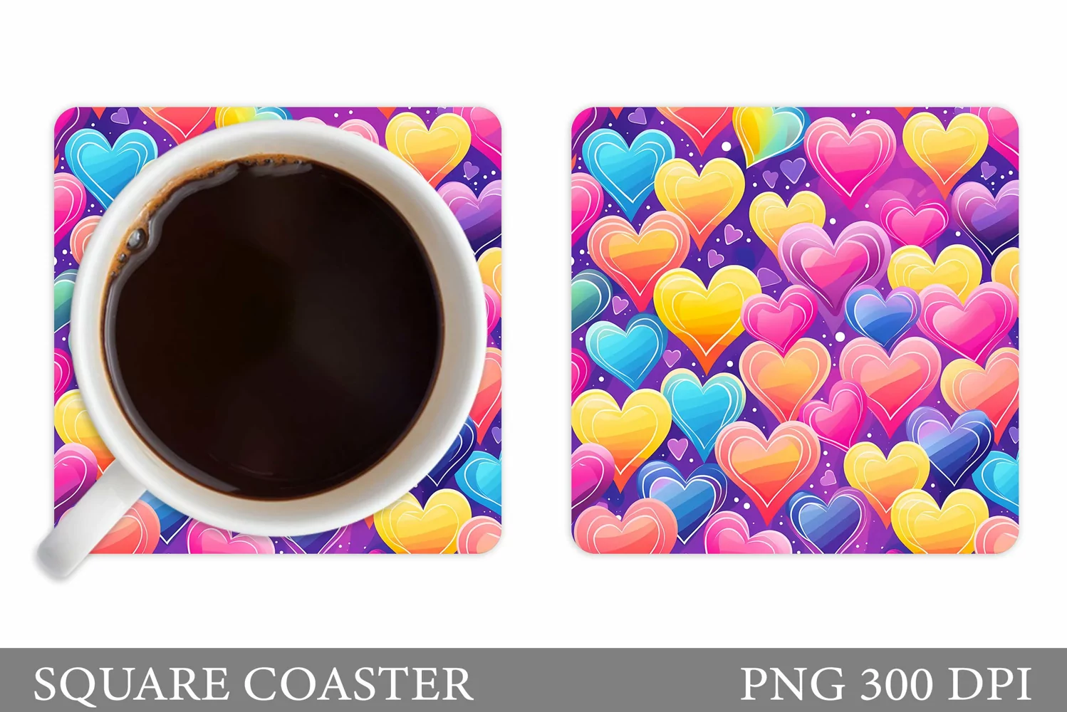Colorful Hearts Coaster. Hearts Square Coaster Sublimation