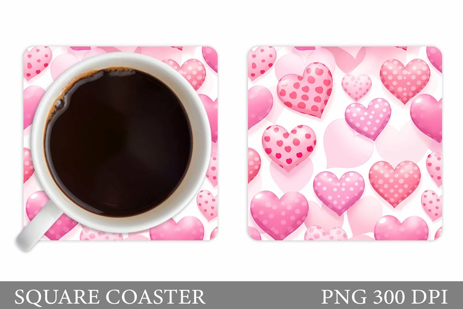 Hearts Square Coaster. Hearts Coaster Sublimation example image 1