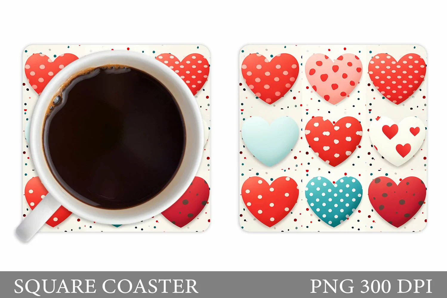Hearts Coaster Sublimation. Hearts Square Coaster Design