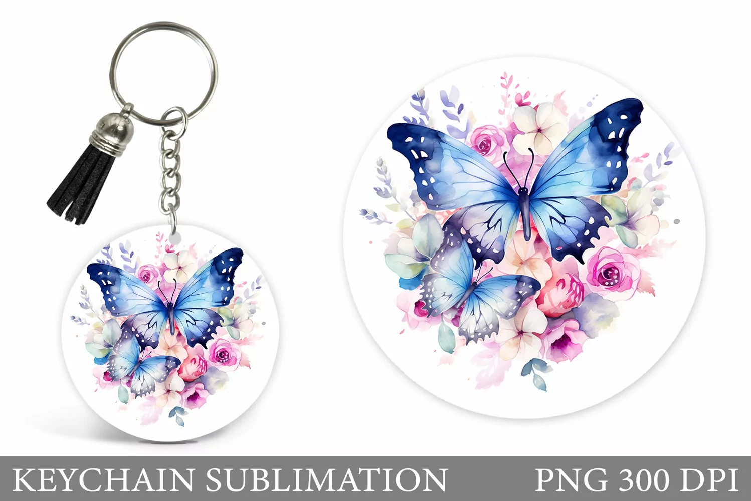 Butterfly Keychain Design. Round Keychain Flowers