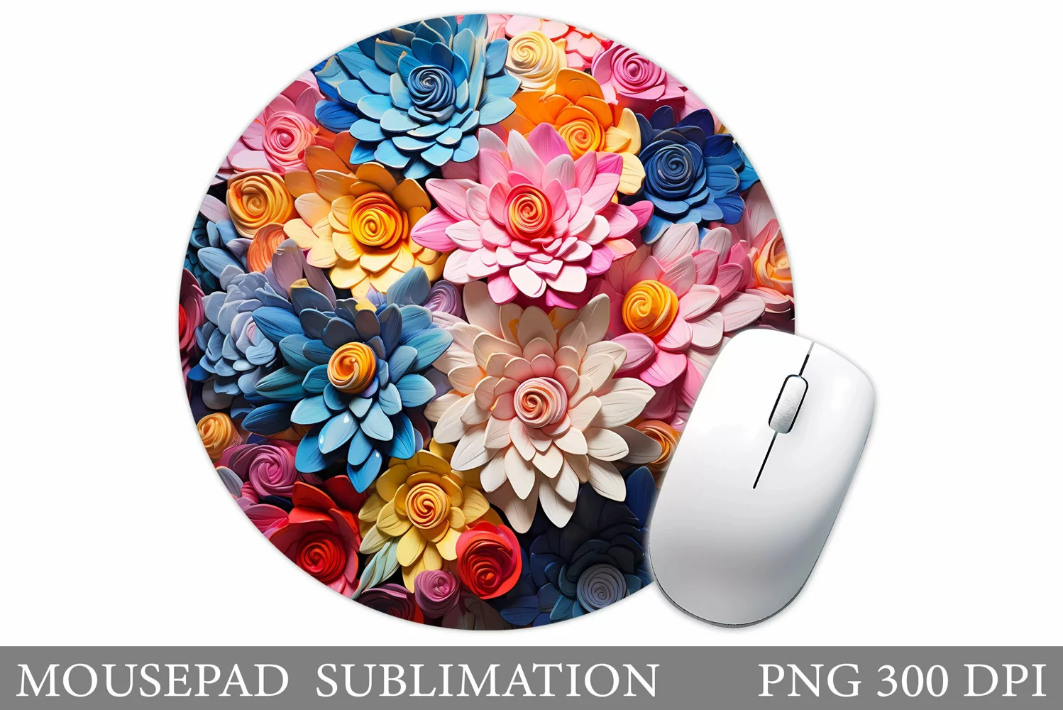 3D Flowers Mouse Pad. Flowers Round Mouse Pad Sublimation