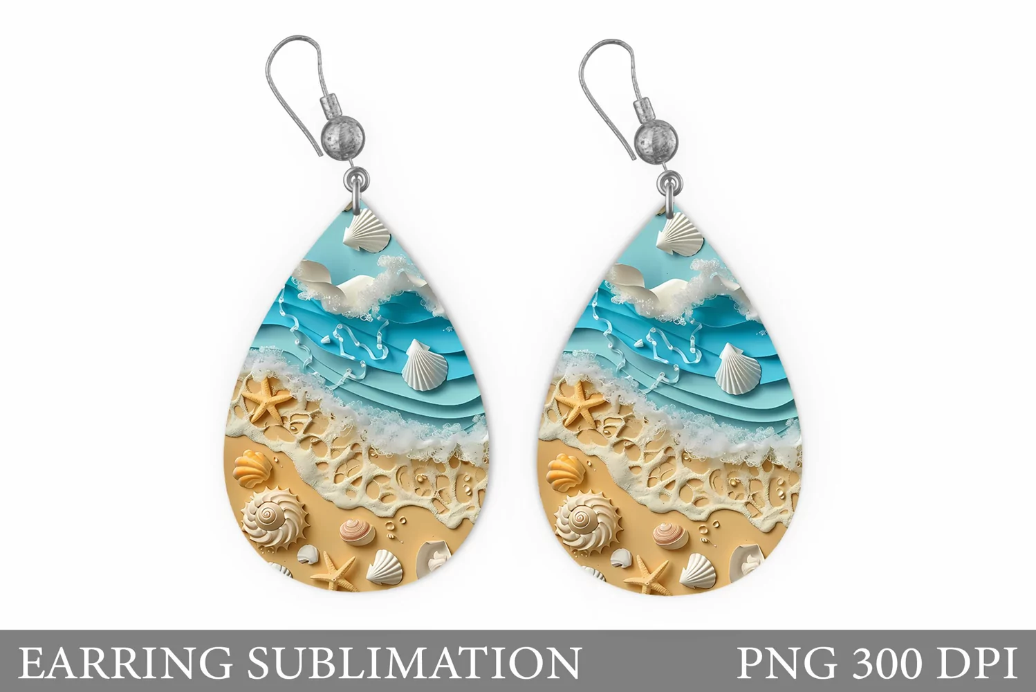 3D Sea Earring Design. 3D Seashell Earring Sublimation example image 1