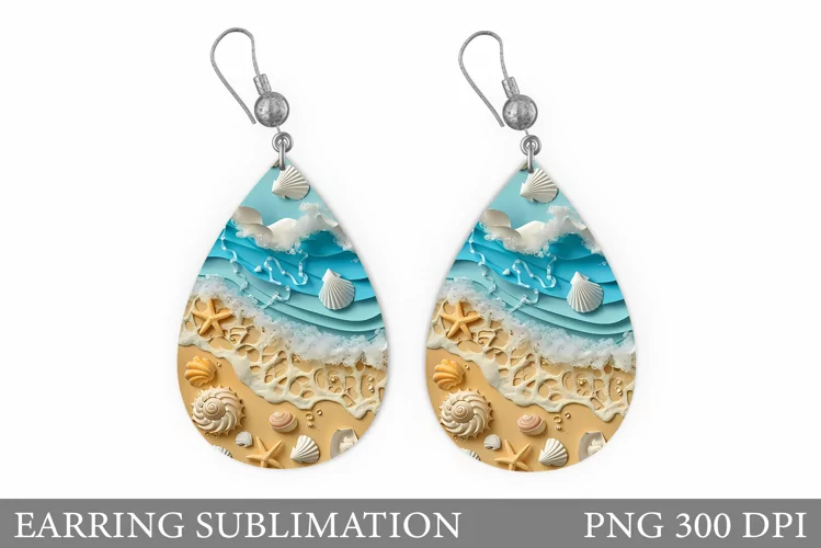 3D Sea Earring Design. 3D Seashell Earring Sublimation