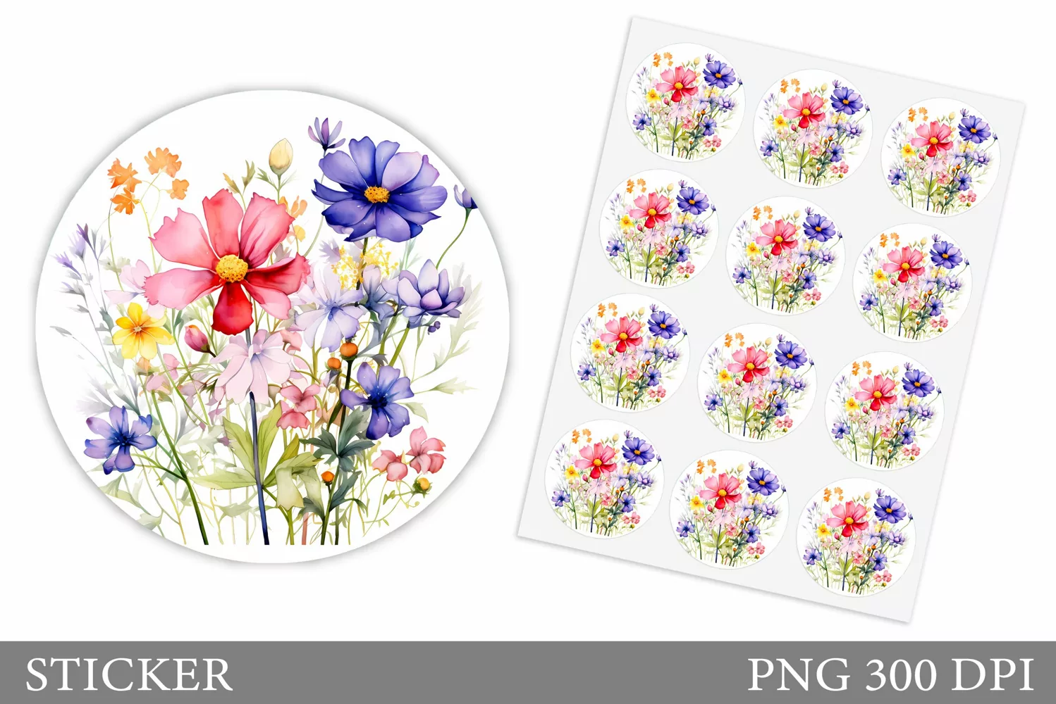 Summer Sticker Flowers Sticker Floral Sticker Watercolor Flowers Sticker Wildflowers Sticker Flowers Sticker Template Blooming Flowers Sticker Flowers Summer Sticker Summer Flowers Sticker Wildflowers Sticker Design