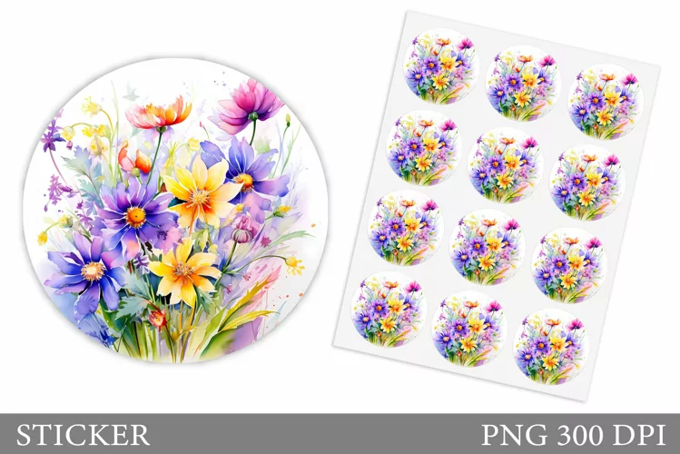 Summer Sticker Flowers Sticker Floral Sticker Watercolor Flowers Sticker Wildflowers Sticker Flowers Sticker Template Blooming Flowers Sticker Flowers Summer Sticker Summer Flowers Sticker Wildflowers Sticker Design