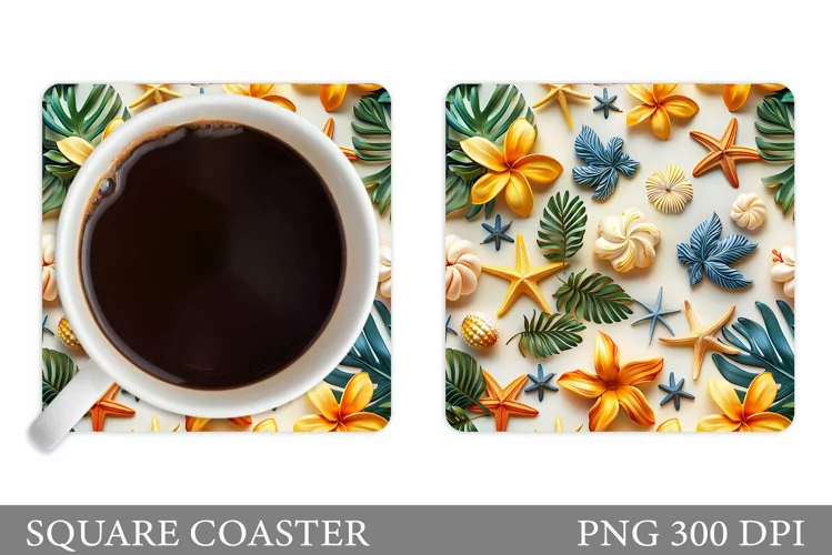 Seashell Coaster Square Coaster Design Beach Coaster 3d Beach Square Coaster Nature Square Coaster 3d Sea Square Coaster 3d Starfish Coaster Design Ocean Coaster Starfish Coaster 3d Seashell Coaster