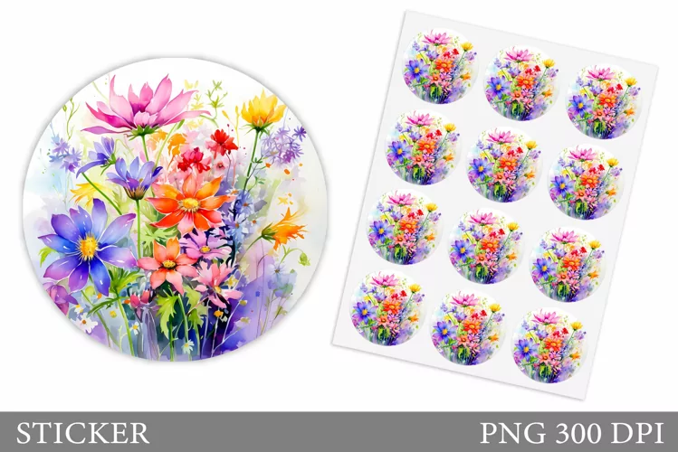 Summer Sticker Flowers Sticker Floral Sticker Watercolor Flowers Sticker Wildflowers Sticker Flowers Sticker Template Blooming Flowers Sticker Flowers Summer Sticker Summer Flowers Sticker Wildflowers Sticker Design