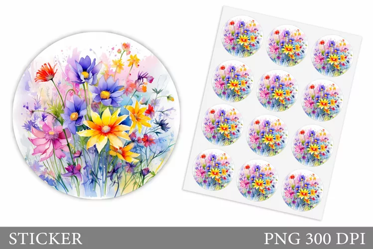 Summer Sticker Flowers Sticker Floral Sticker Watercolor Flowers Sticker Wildflowers Sticker Flowers Sticker Template Blooming Flowers Sticker Flowers Summer Sticker Summer Flowers Sticker Wildflowers Sticker Design