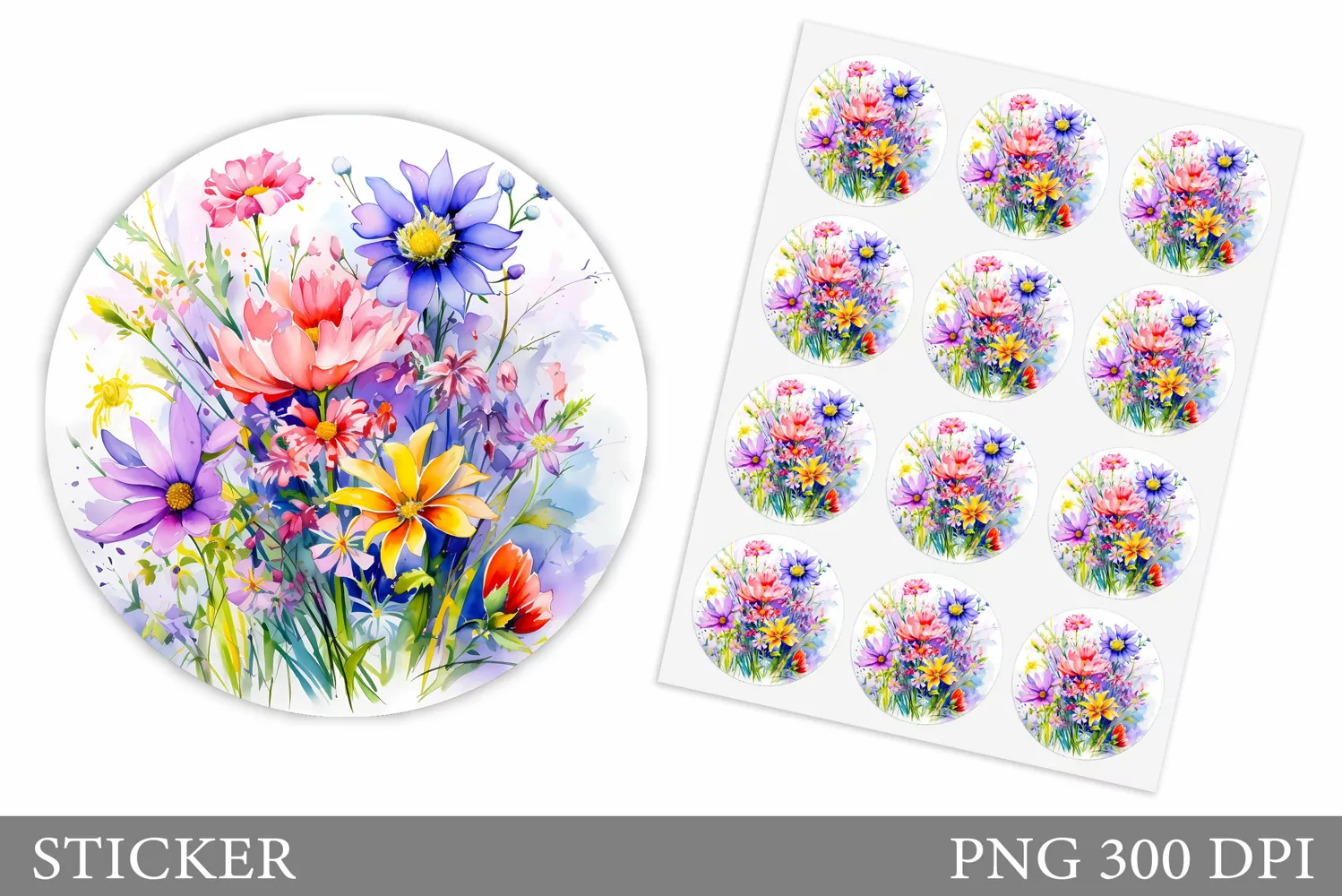 Summer Sticker Flowers Sticker Floral Sticker Watercolor Flowers Sticker Wildflowers Sticker Flowers Sticker Template Blooming Flowers Sticker Flowers Summer Sticker Summer Flowers Sticker Wildflowers Sticker Design