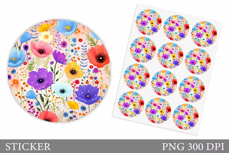 Similar Design Products to Wildflowers Sticker Design. Floral Sticker Template