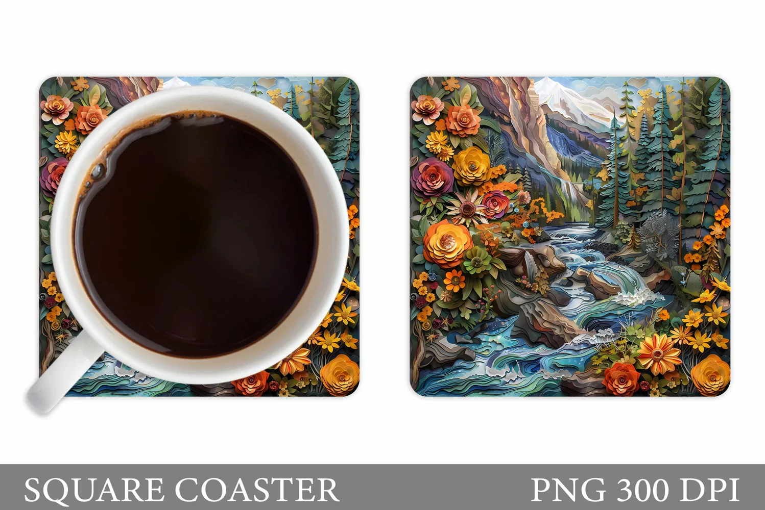 Square Coaster Coaster Sublimation Summer Coaster Flowers Coaster Nature Coaster Sublimation Nature Coaster 3d Mountains Coaster 3d River Coaster River Coaster Mountains Coaster