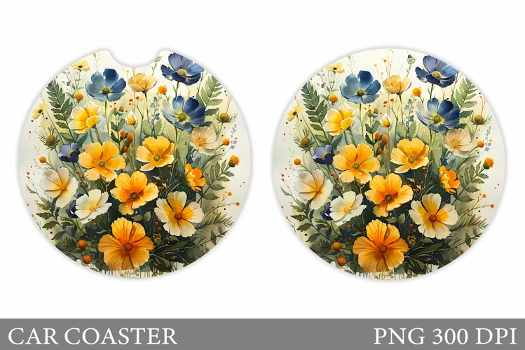 Wildflowers Car Coaster Sublimation. Flowers Car Coaster