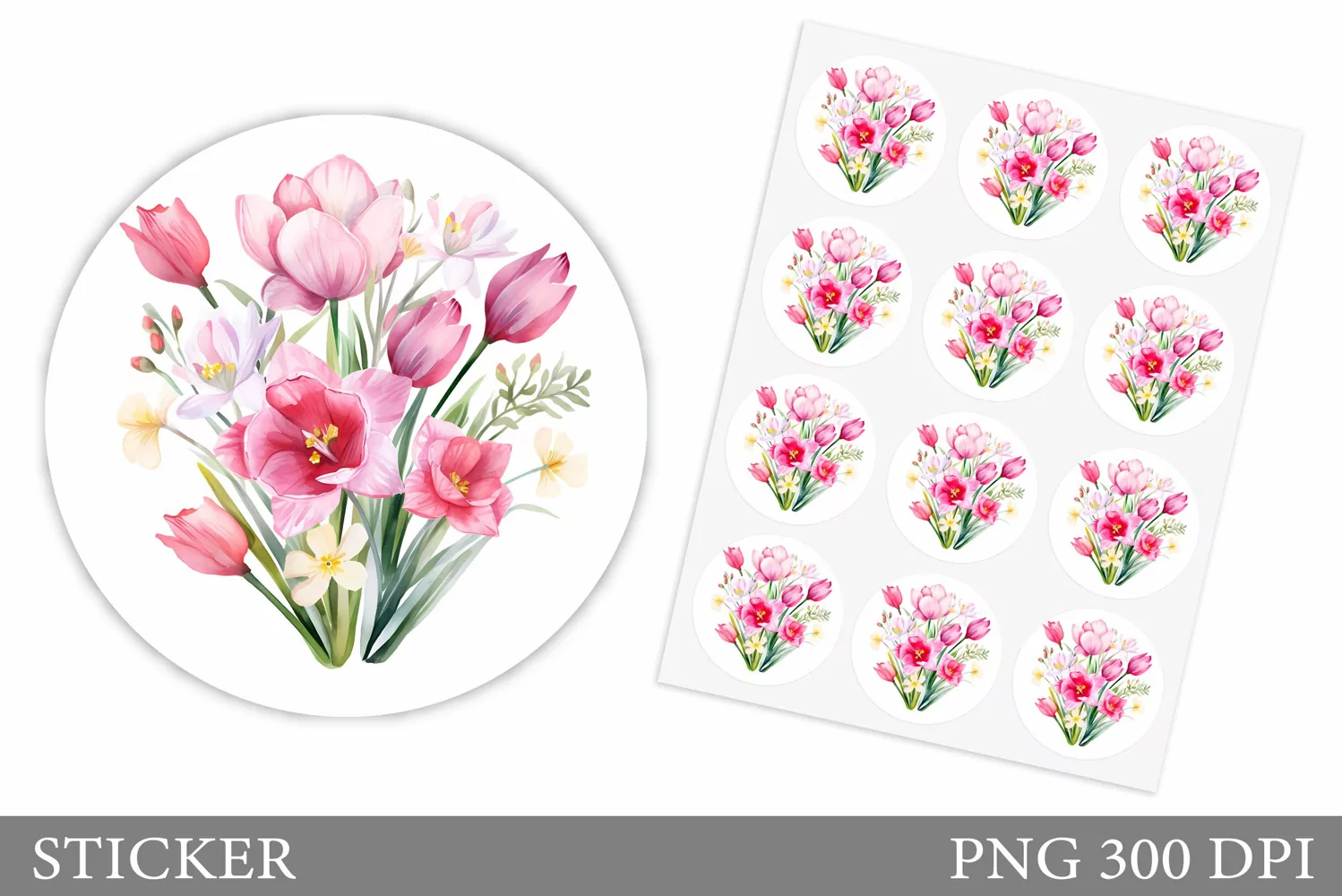 Similar Design Products to Flowers Sticker Design. Spring Round Sticker Template
