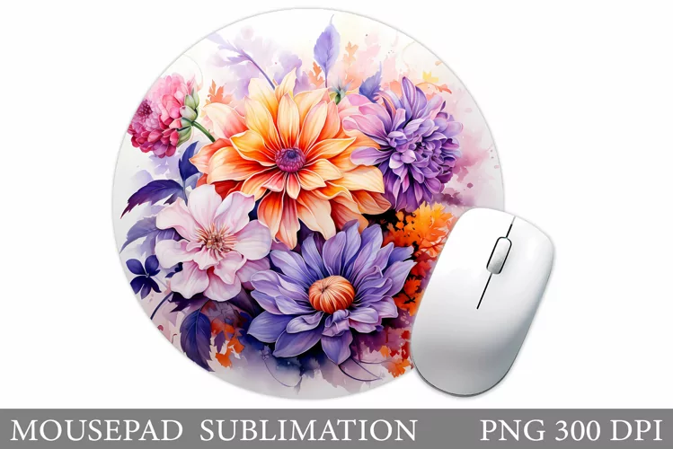 Flowers Mouse Pad Design. Flowers Round Mouse Pad Template