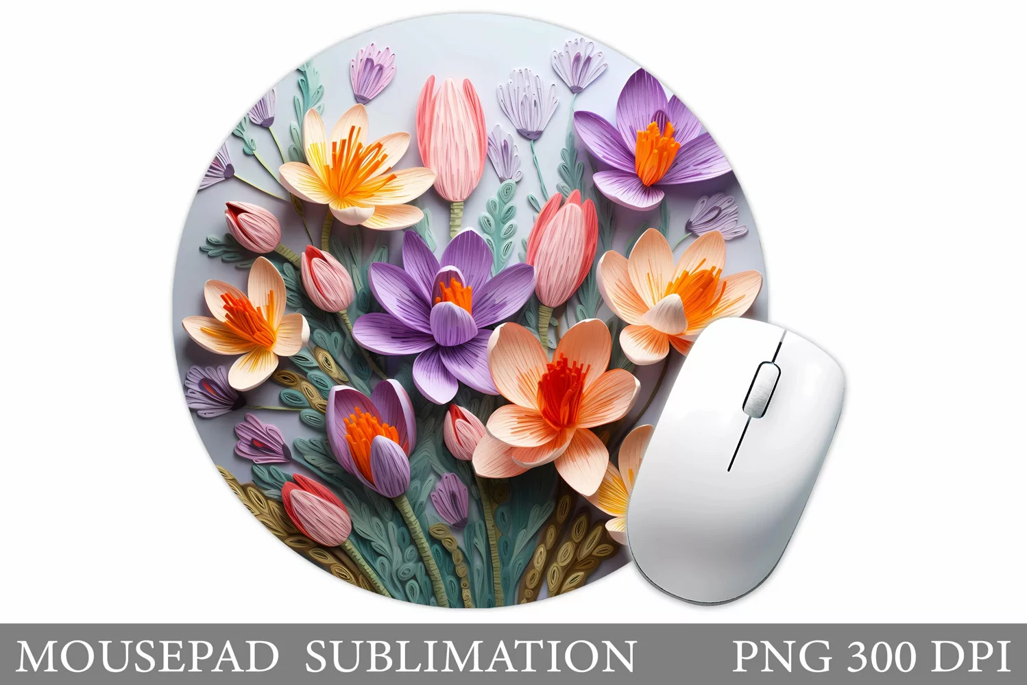 3D Flowers Mouse Pad Design. Flowers Round Mouse Pad