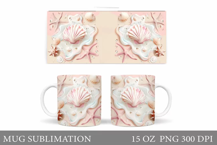 Seashell Mug Sublimation. Sea Mug Wrap Design