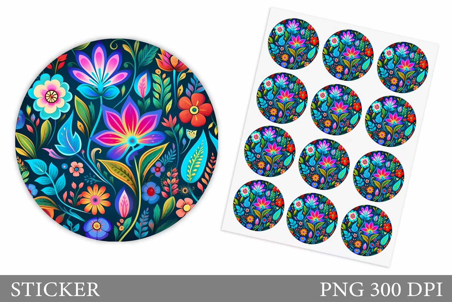 Flowers Sticker Design. Round Sticker Flowers example image 1