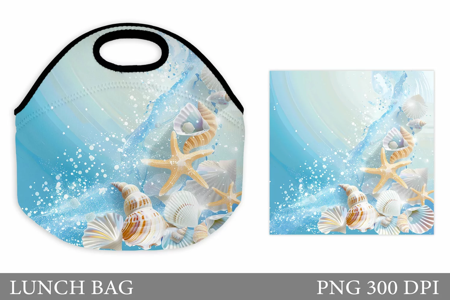 Sea Lunch Bag Design. Seashell Lunch Bag Sublimation