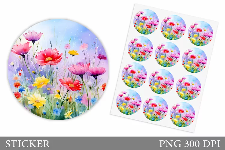 Similar Design Products to Wildflowers Sticker Design. Floral Sticker Template