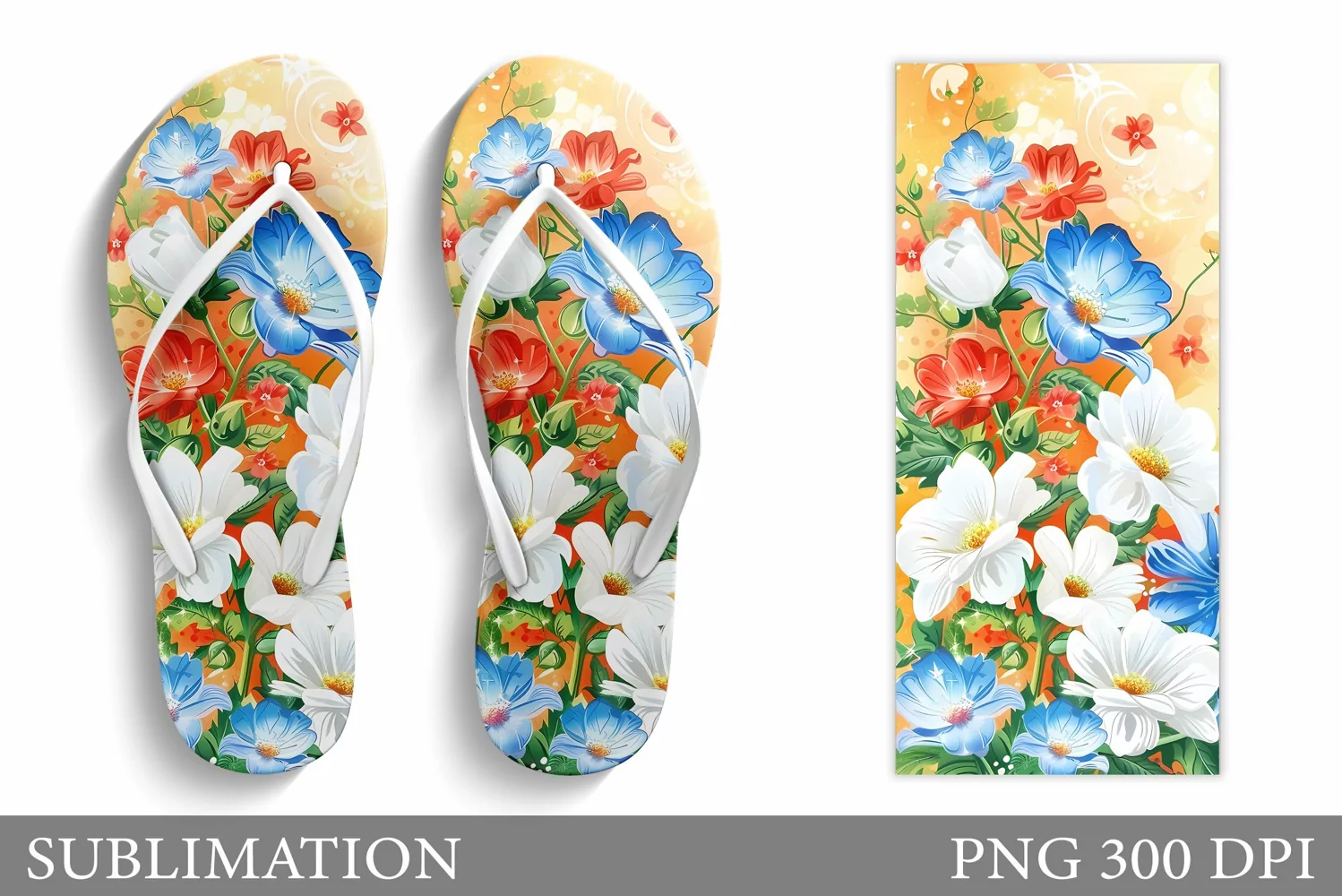Flowers Flip Flop Sublimation. Floral Flip Flop Design