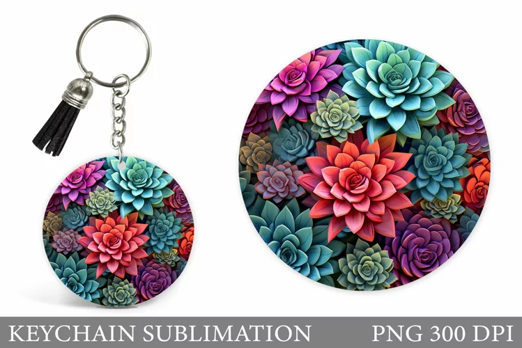 Succulents Keychain Sublimation. Plants Keychain Design