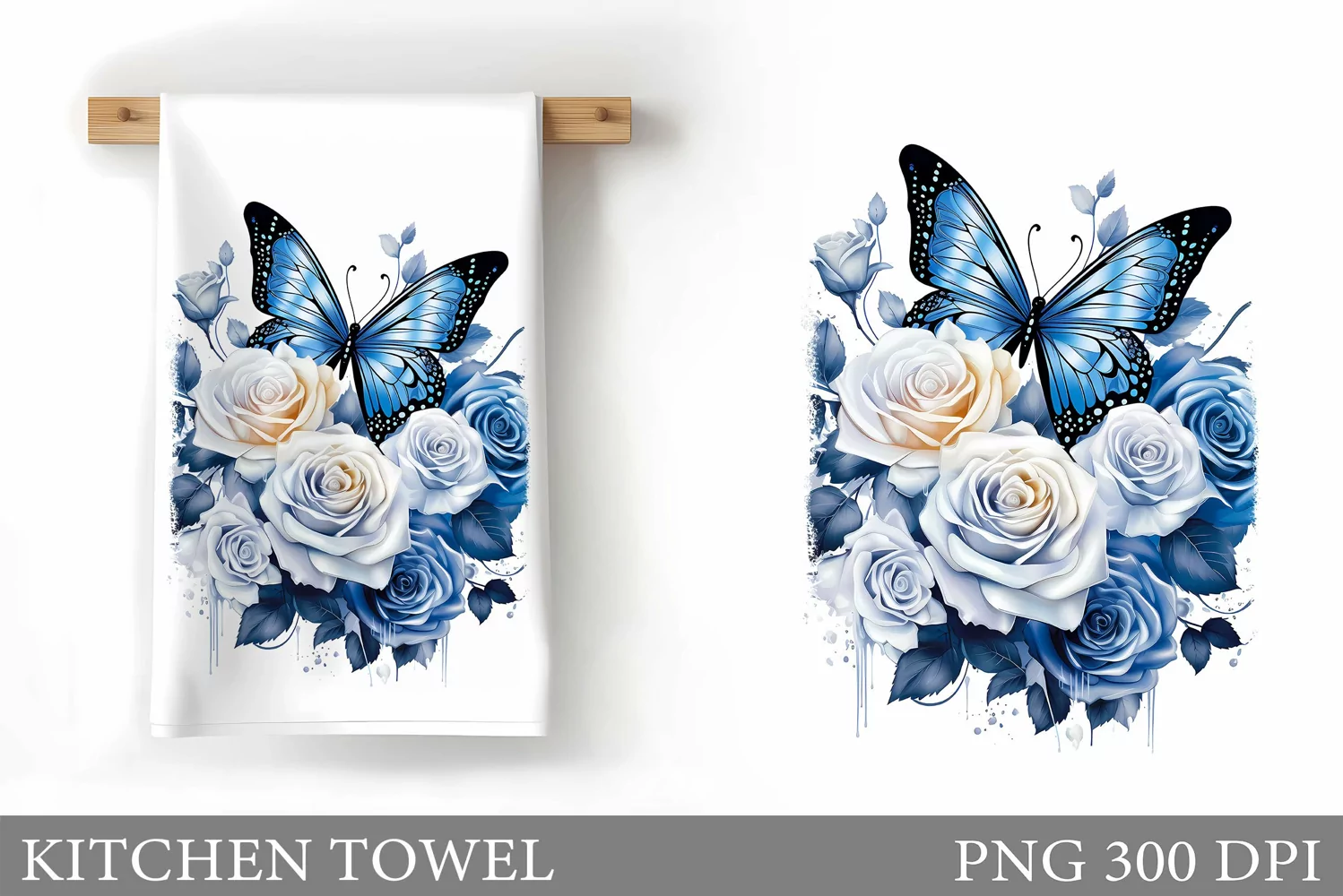Butterfly Kitchen Towel. Flowers Kitchen Towel Sublimation