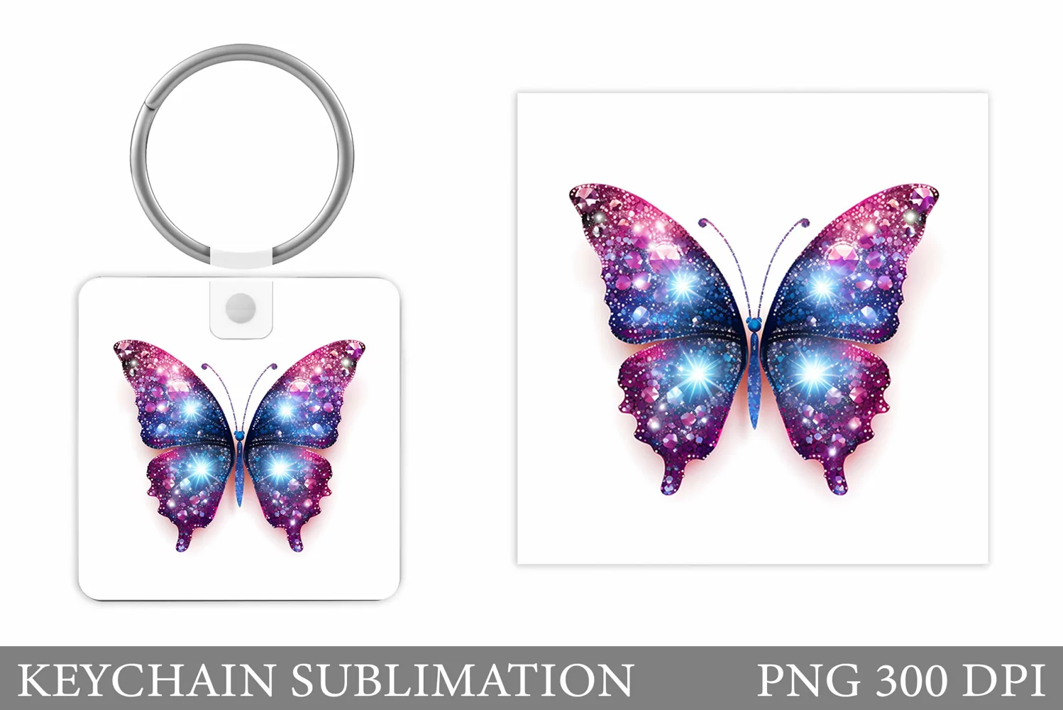 Glitter Butterfly Keychain Design. Square Keychain Butterfly