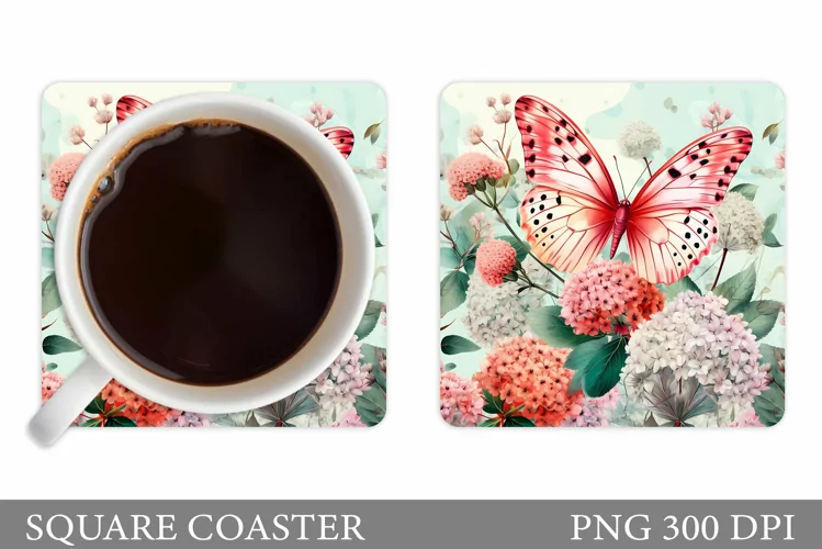 Floral Coaster Sublimation. Butterfly Coaster Design
