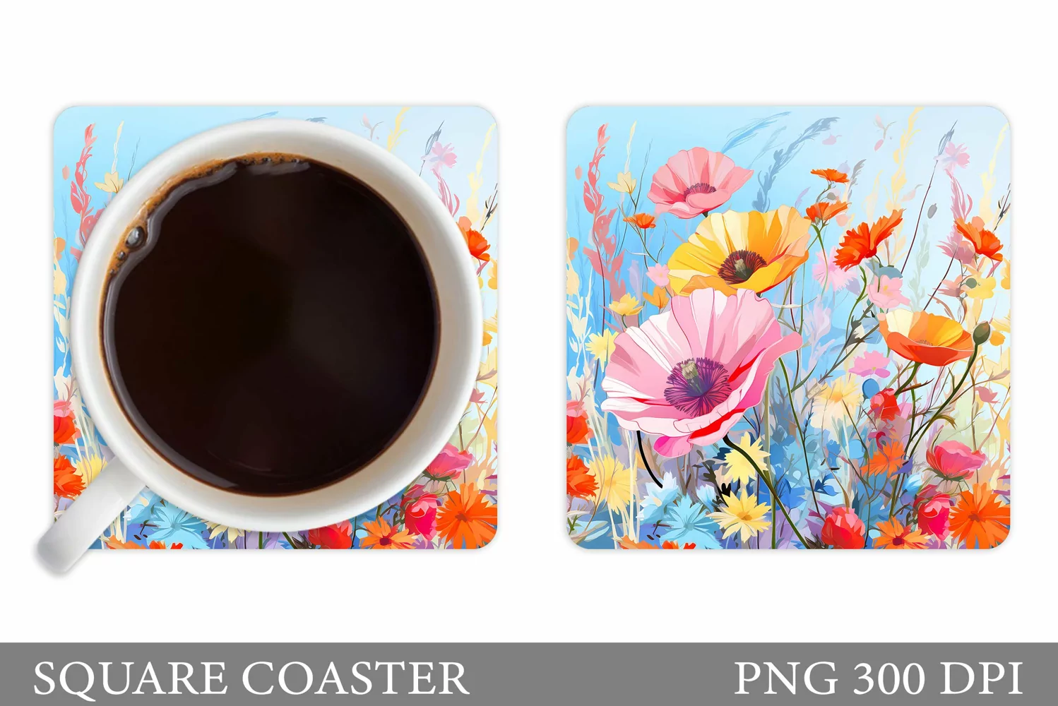 Wildflowers Coaster Design. Flowers Square Coaster