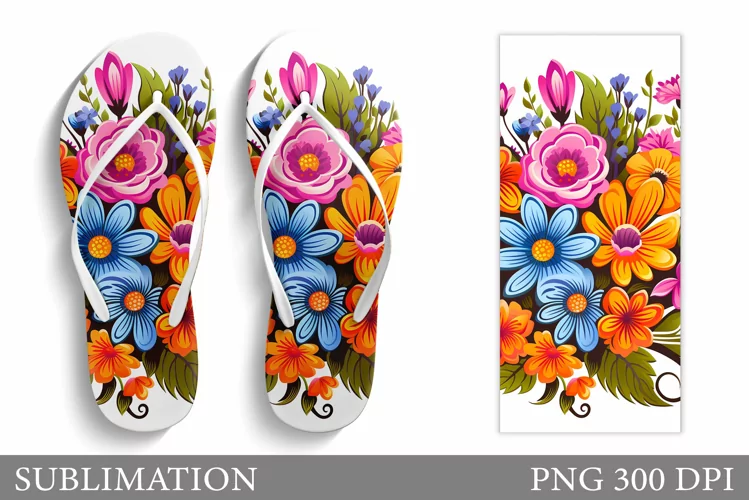 Flowers Flip Flop Sublimation. Floral Flip Flop Design