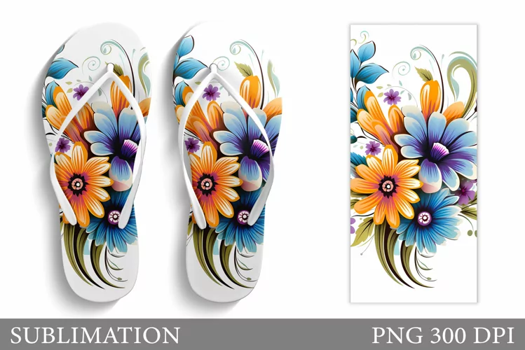 Flowers Flip Flop Sublimation. Floral Sublimation