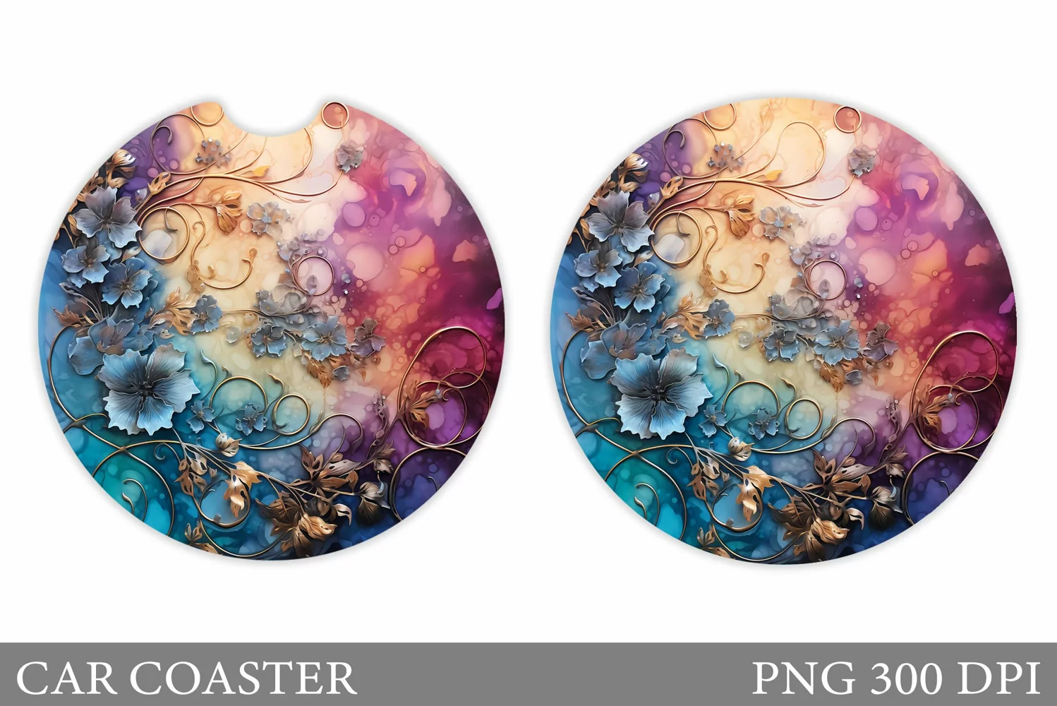 Similar Design Products to Flowers Car Coaster Design. Alcohol Ink Car Coaster