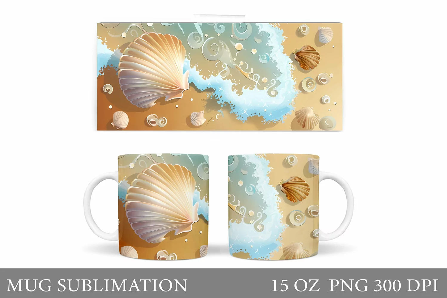 Seashell Mug Sublimation. Sea Mug Wrap Design