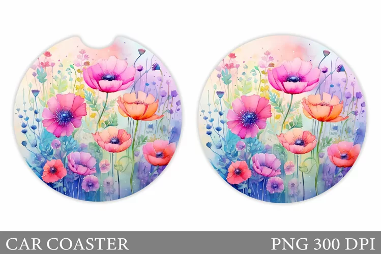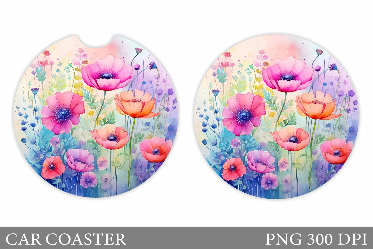 Wildflowers Car Coaster Sublimation. Flowers Car Coaster