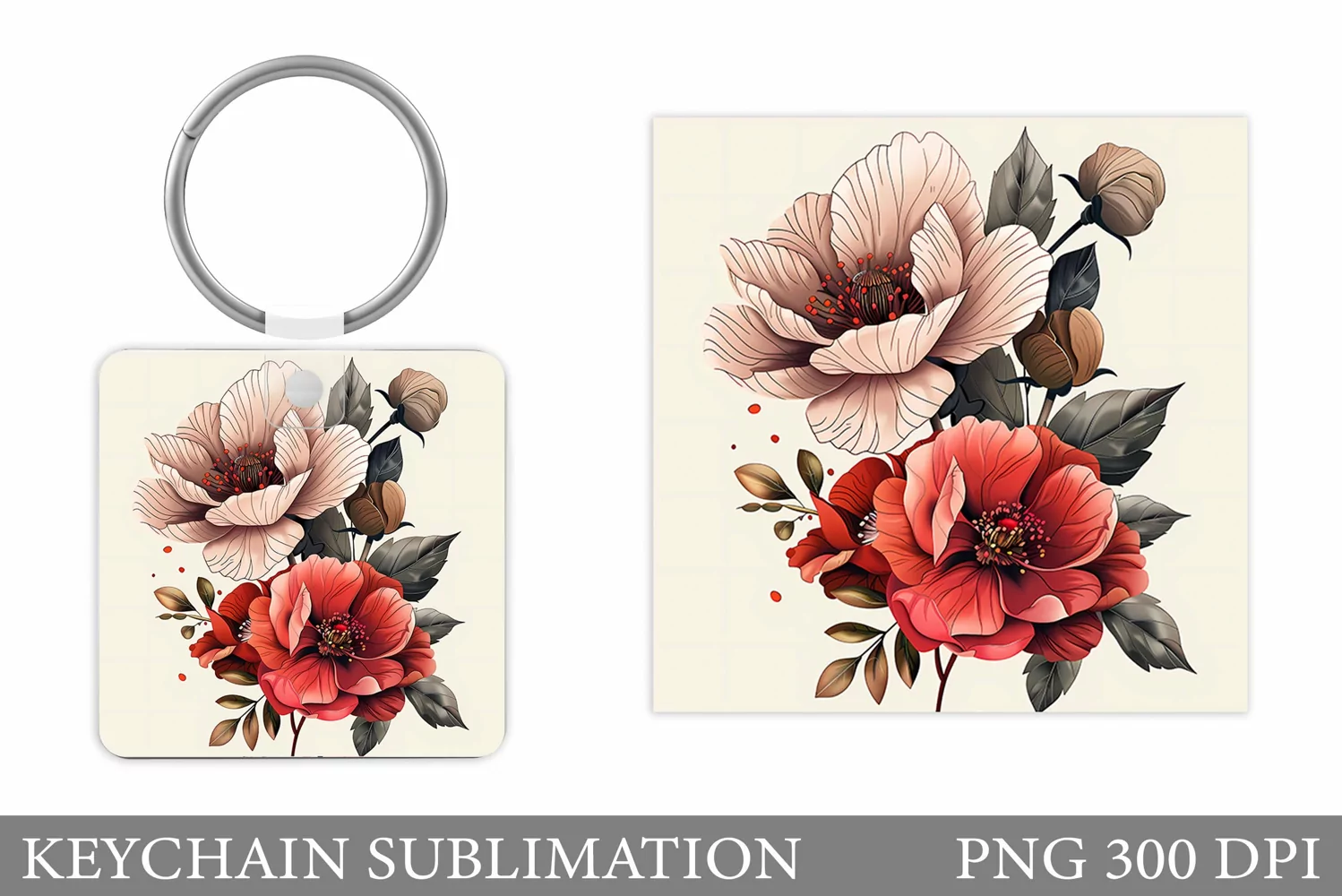 Similar Design Products to Flowers Keychain Design. Floral Keychain Sublimation