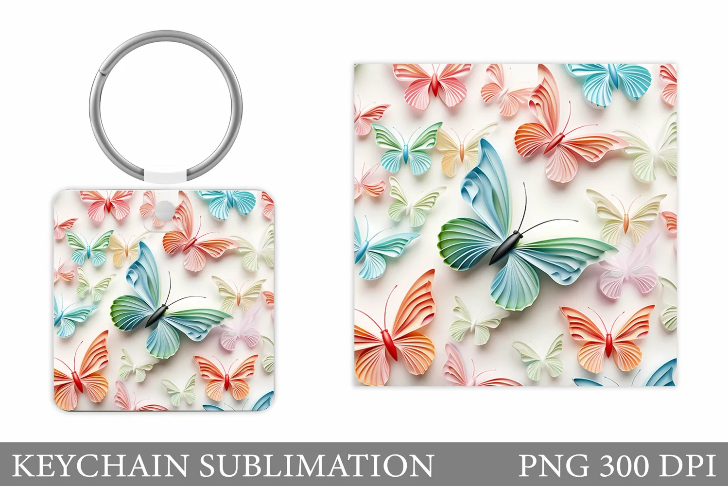 Similar Design Products to 3D Butterflies Keychain. Butterfly Square Keychain
