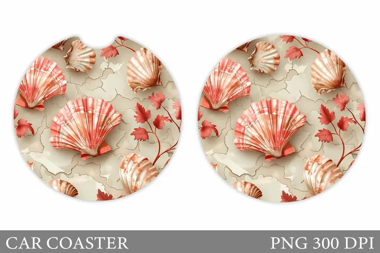 Seashell Car Coaster Sublimation. Sea Car Coaster Design
