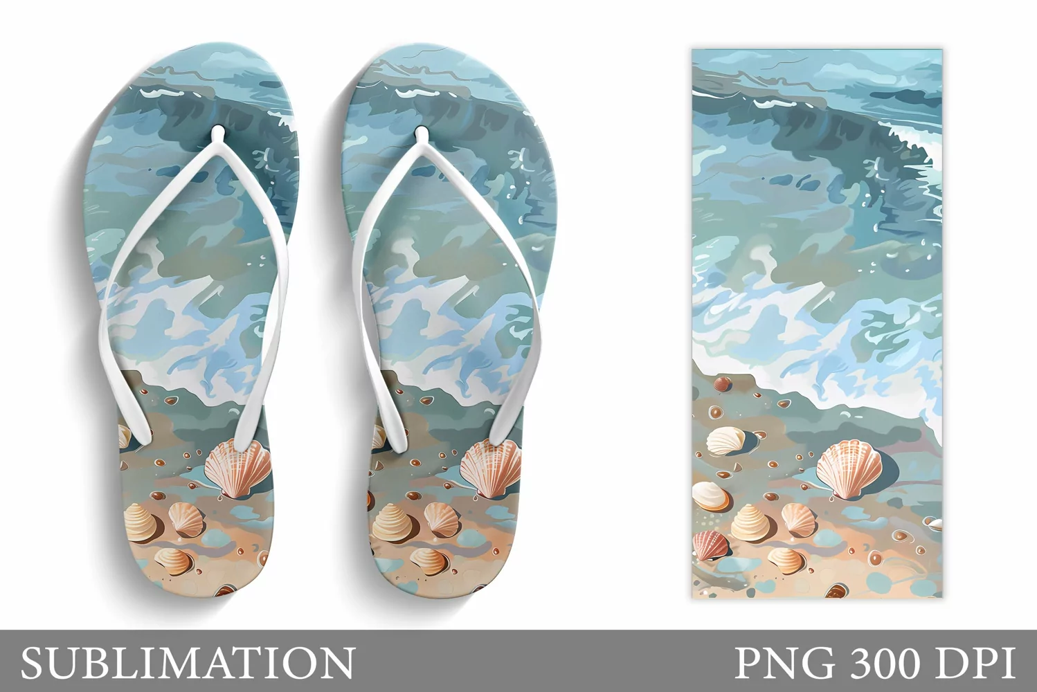 Seashell Flip Flop Sublimation. Sea Flip Flop Design