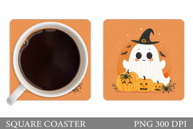 Cute Ghost Coaster Design. Halloween Coaster Sublimation