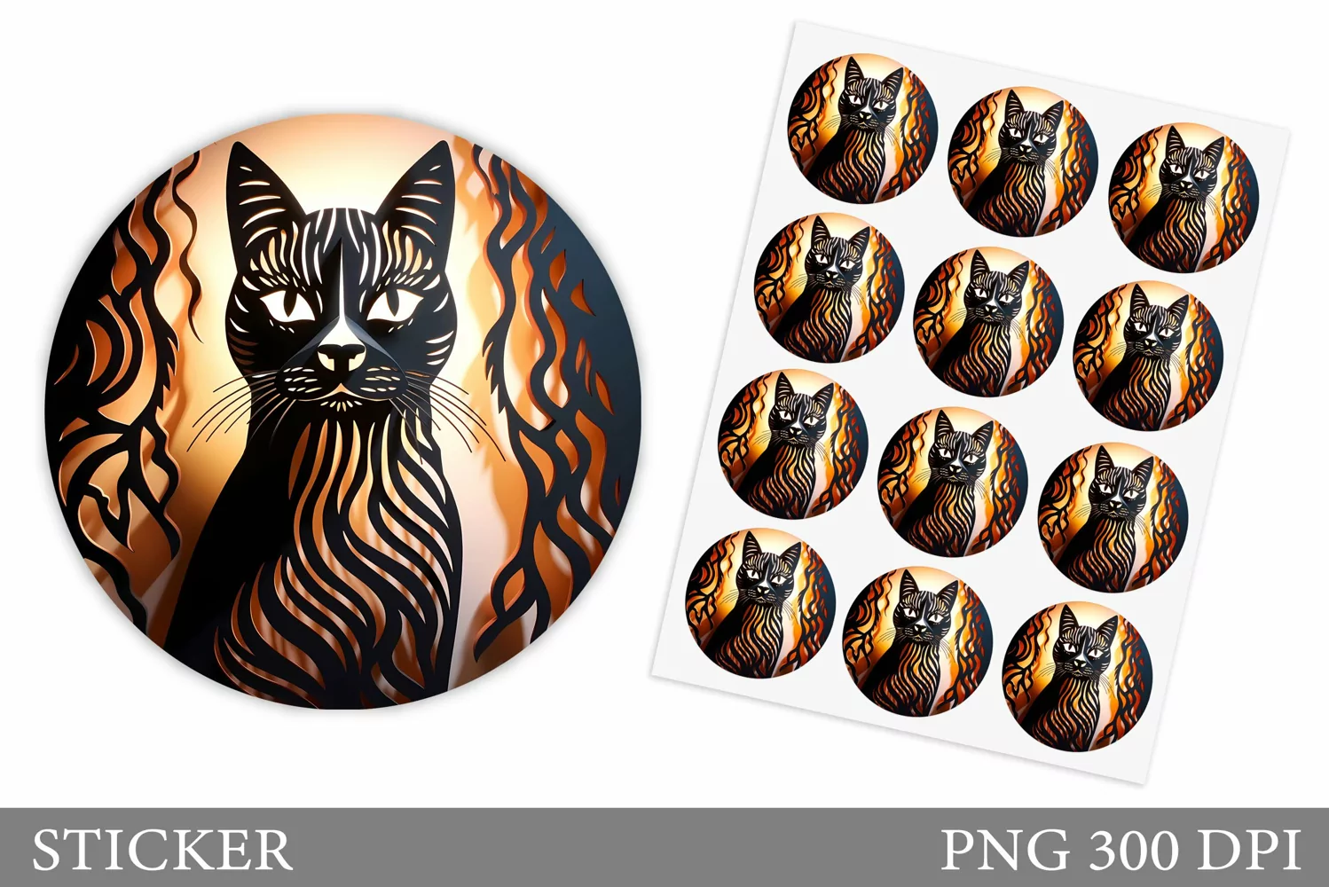 Round Sticker Summer Sticker Cat Sticker Animal Sticker Cute Cat Sticker Black Cat Sticker Cat Sticker Design Cat Sticker Template 3d Cat Sticker Cat Round Sticker
