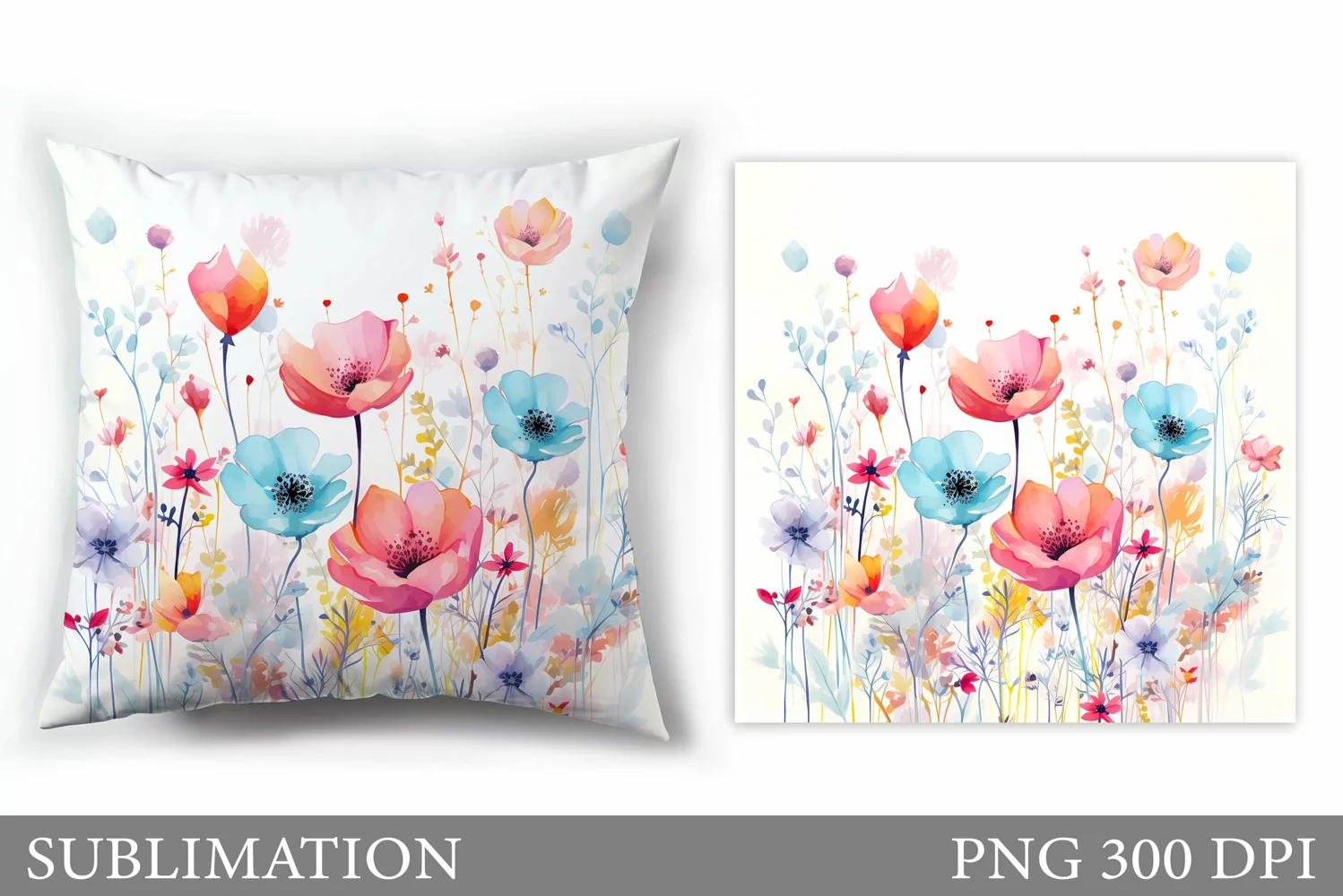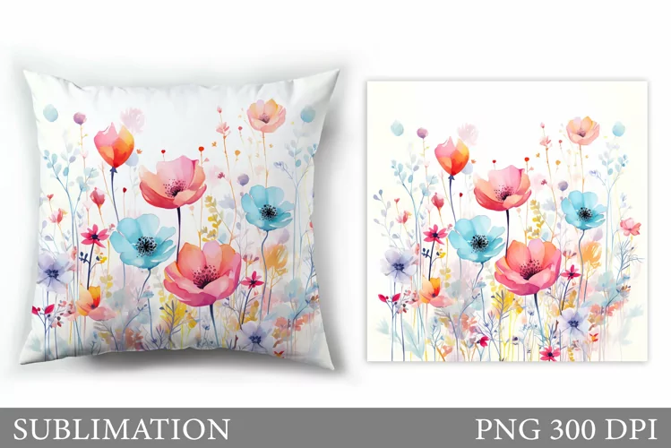 Flowers Sublimation. Wildflowers Pillow Sublimation example image 1