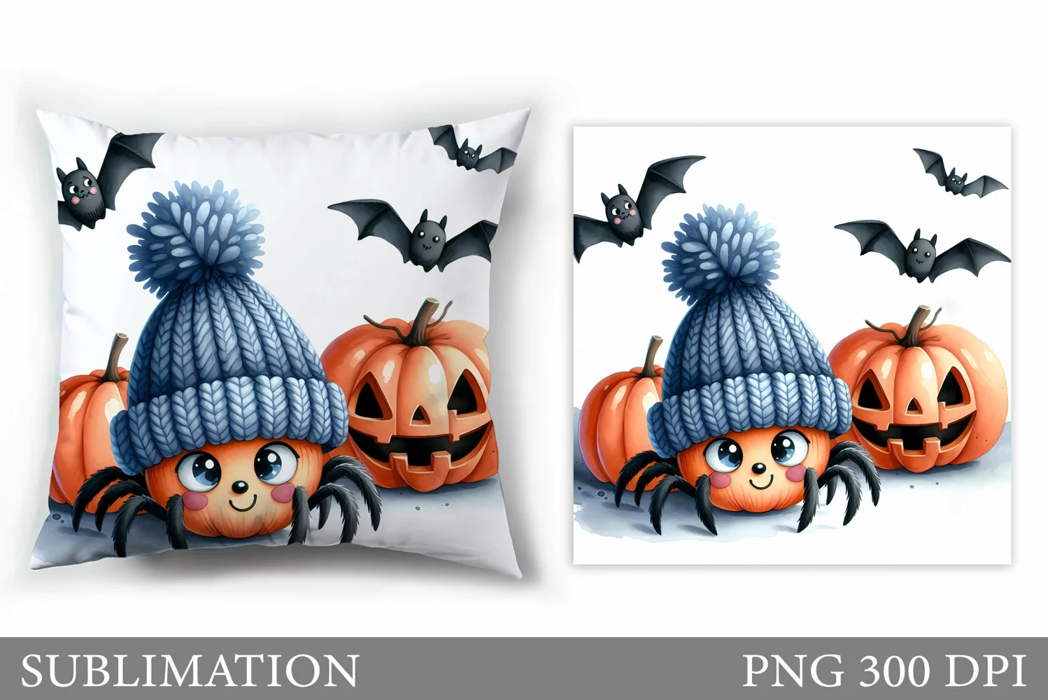 Cute Spider Pillow Design. Cute Halloween Sublimation