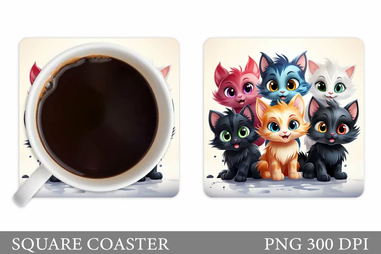 Funny Cat Coaster Design. Cute Cats Coaster Sublimation