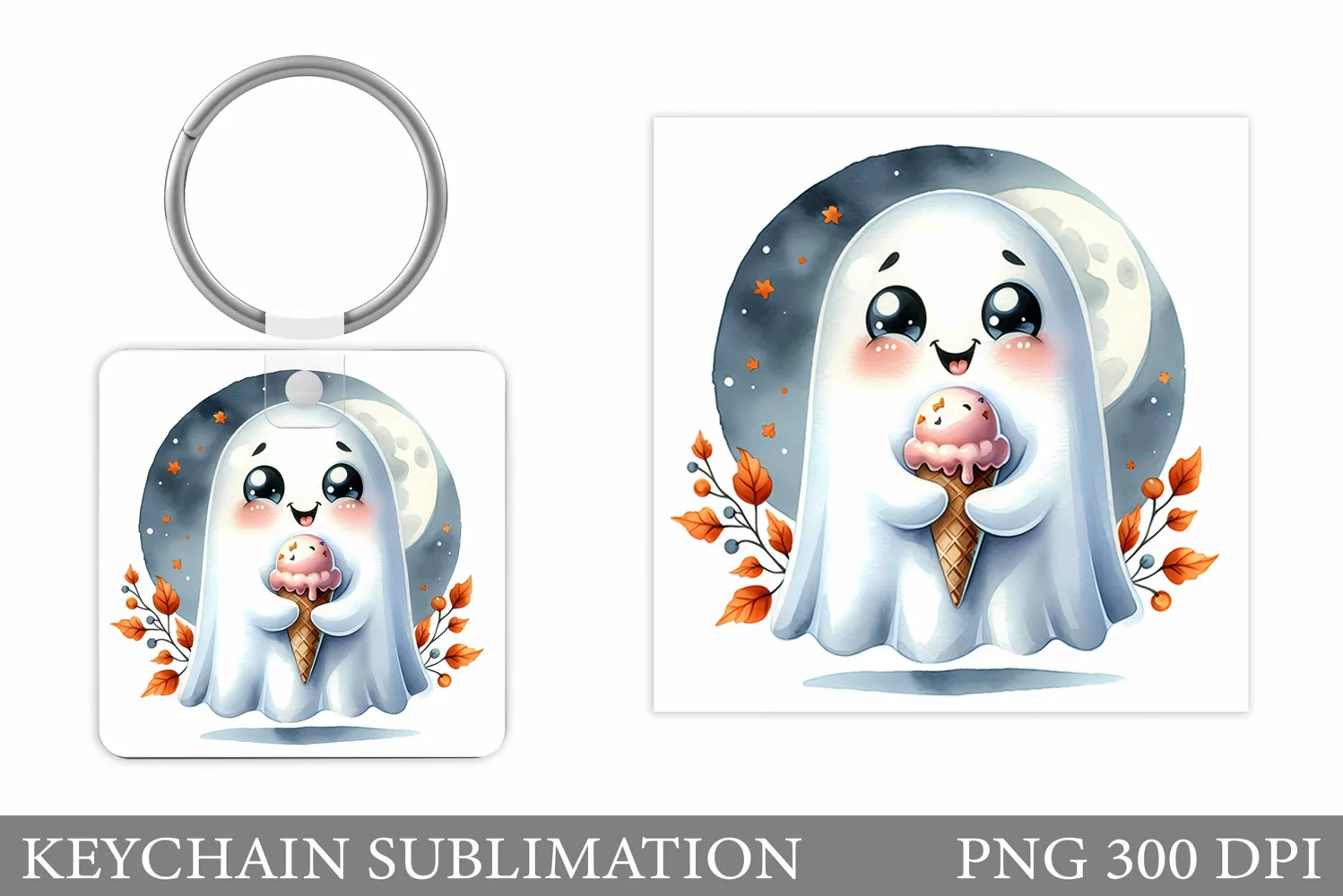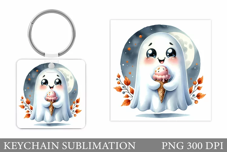 Cute Ghost Keychain Design. Cute Halloween Keychain example image 1