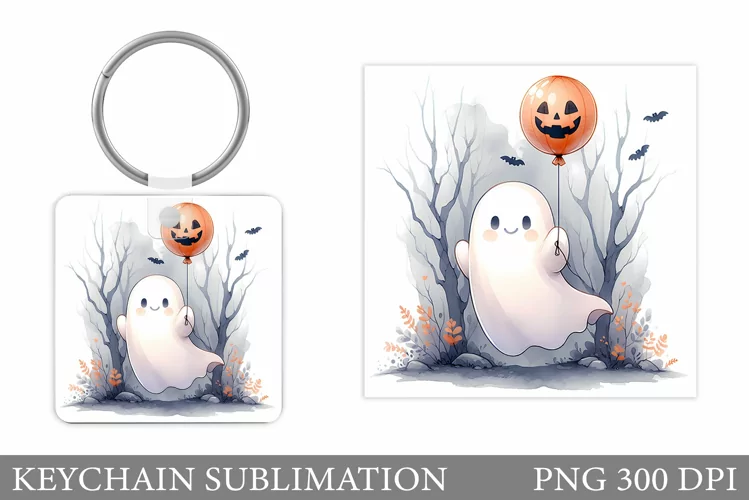Cute Ghost Keychain Design. Cute Balloon Keychain example image 1