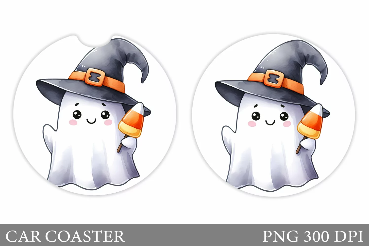 Cute Ghost Car Coaster Design. Halloween Car Coaster