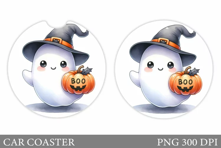 Cute Ghost Car Coaster Design. Halloween Car Coaster