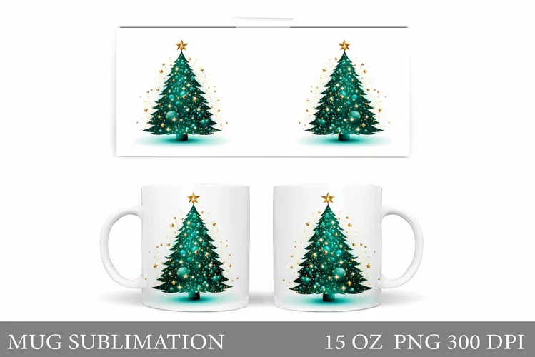 Christmas Tree Mug Wrap Design. Christmas Mug Sublimation