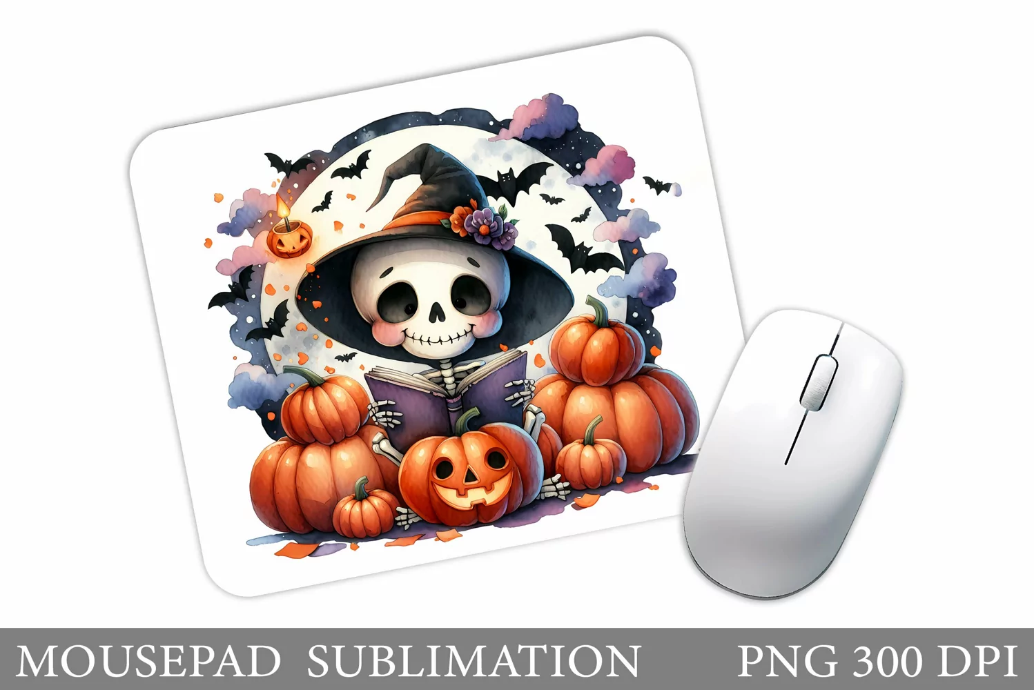 Cute Skeleton Mouse Pad. Halloween Mouse Pad Sublimation
